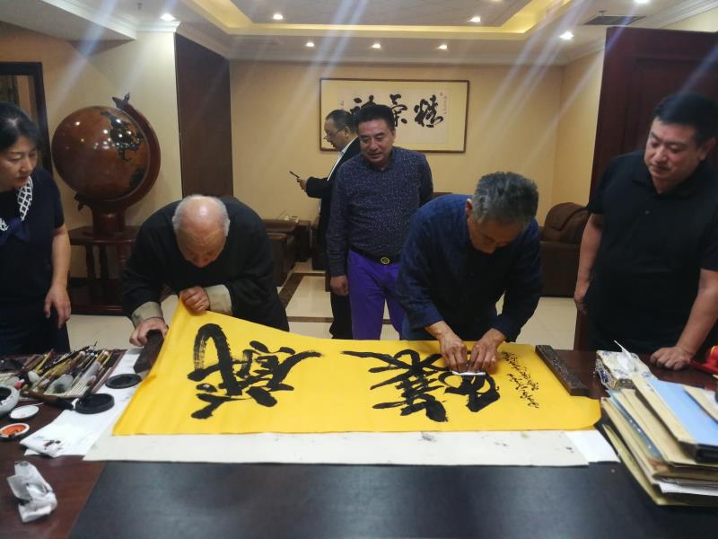 繼劉云山先生之后王夢庚老先生為仕龍集團董事長許寶平題字并親密合影