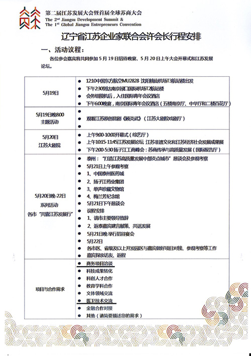仕龍集團董事長參加遼寧江蘇企業家聯合會行程安排